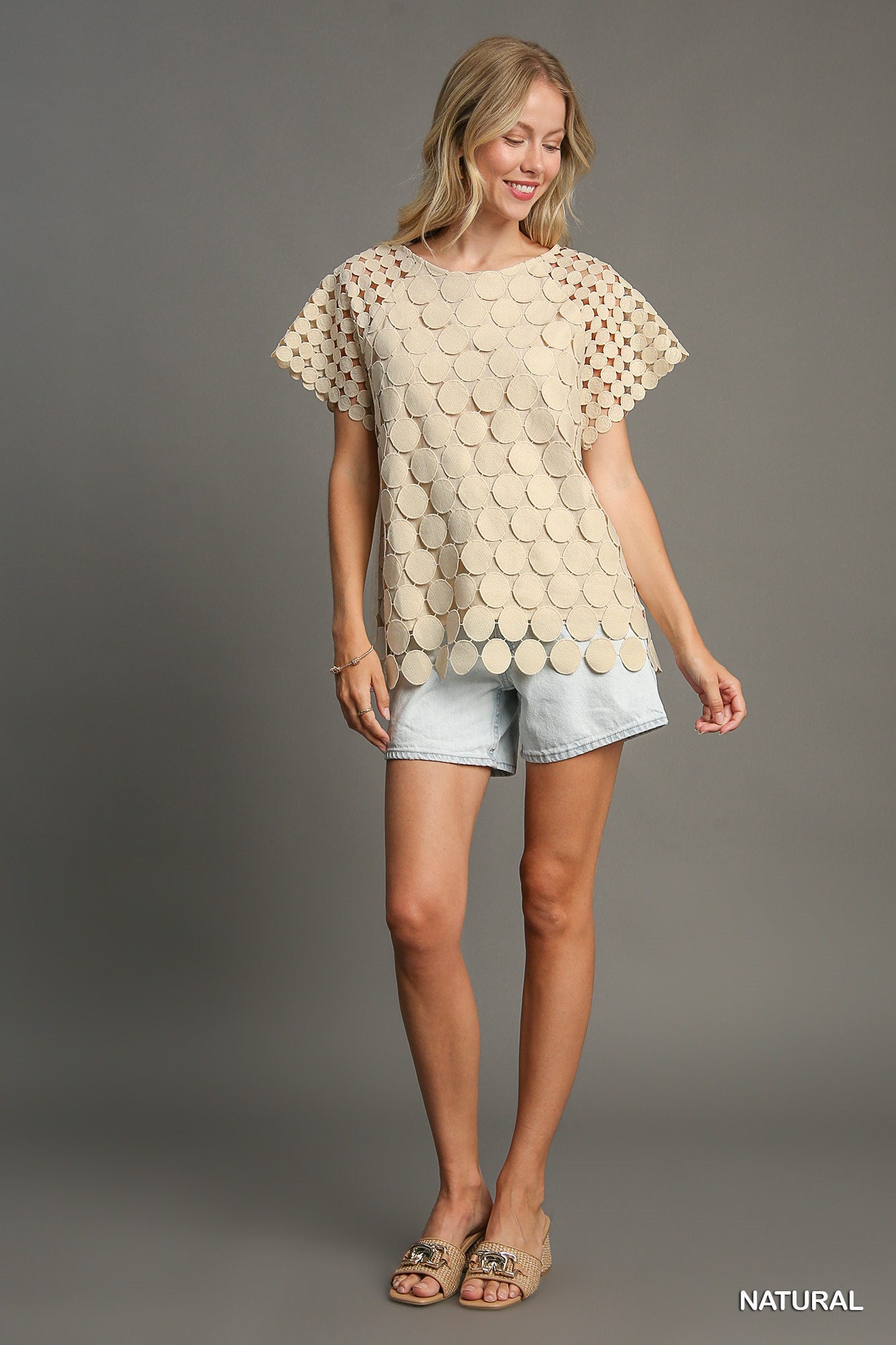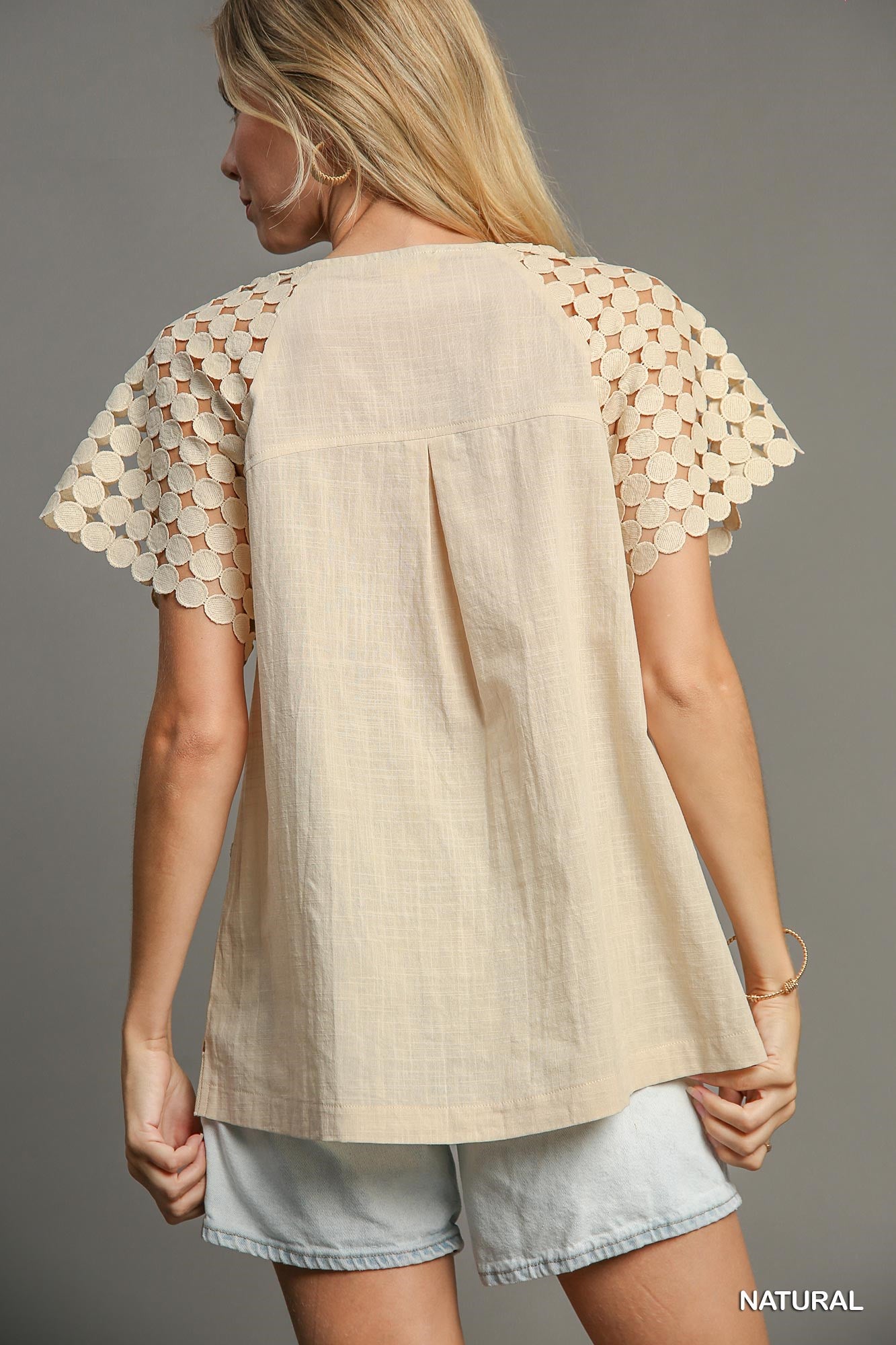 Polka Dot TopDetails:• Boxy Cut• Lace Raglan SleeveFit & Model Notes:• Model is 5'9" and is wearing a small.• All Measurements are approximate.• LinedFabric Contents:• 100% Cotton
