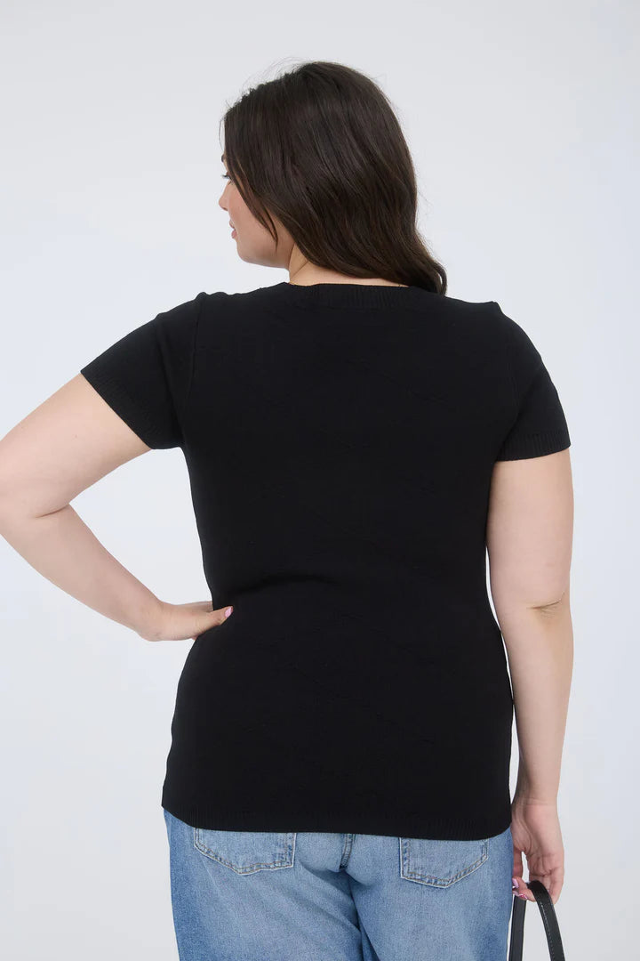 Bow Detail Crew Neck Short Sleeve Sweater Top