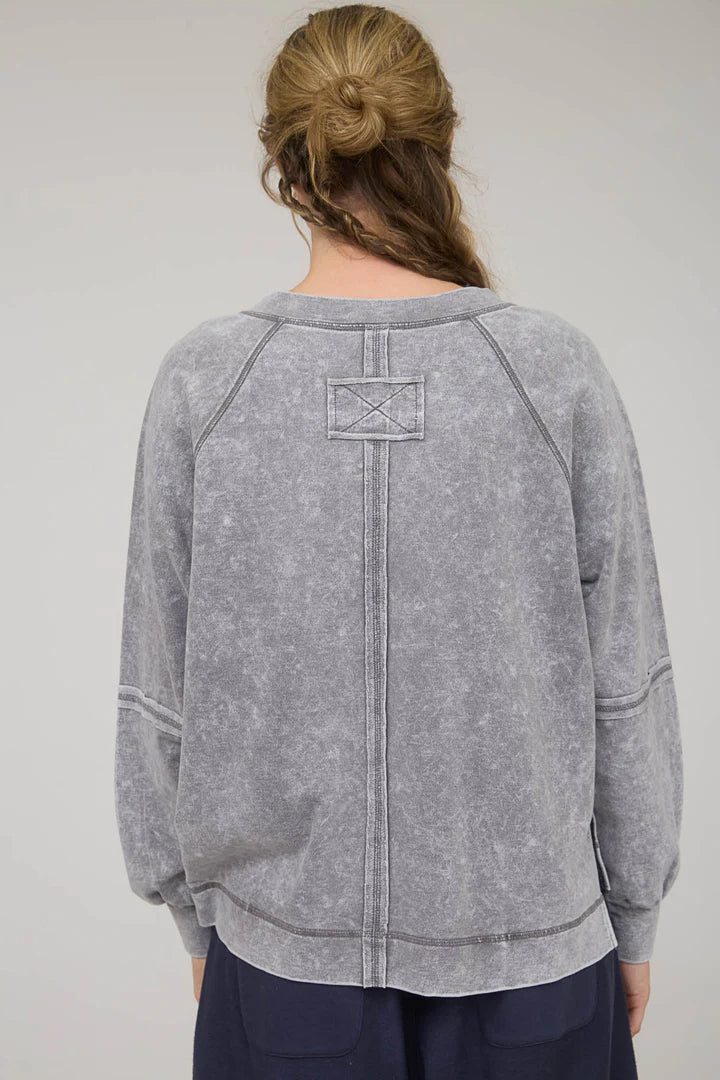 Washed V Neck Exposed Seam Knit Top
